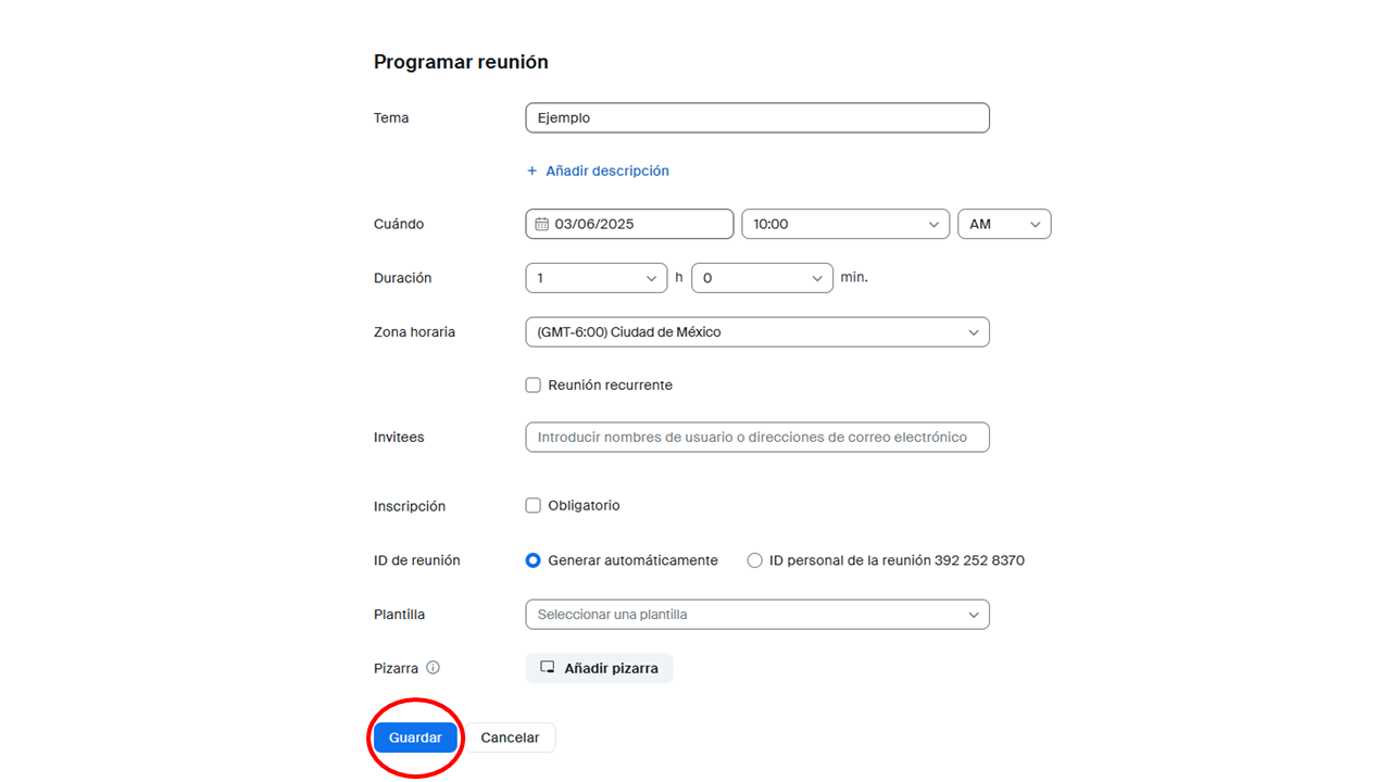 Siga los siguientes pasos para programar reuniones en la plataforma Zoom: