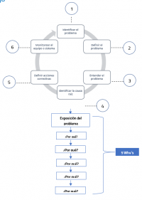 | 2 | Encargado del área auditada | Una vez que ya se identificó, entendió y definió el problema debemos ocupar el método de las 5 Whys con las cuales de desarrollara una tormenta de ideas del porqué del problema como lo muestra el siguiente ejemplo. De esta forma podremos definir la casa raíz del problema. La causa raíz se colocará en la sección V “Acciones correctivas (seguimiento)” del reporte de auditoria, esto se realizará para cada uno de los hallazgos descritos en dicho reporte. |